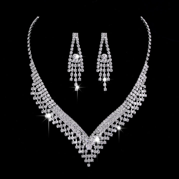 Full Rhinestone Zircon Water Drop Necklace Earrings Jewelry Set
