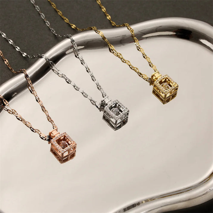 Valentines Day Gift Perfume Bottle Pendant Titanium Steel Necklace Korean Trend Zircon Luxury Female Necklace Charm Jewelry Gift Fashion Jewelry Woman